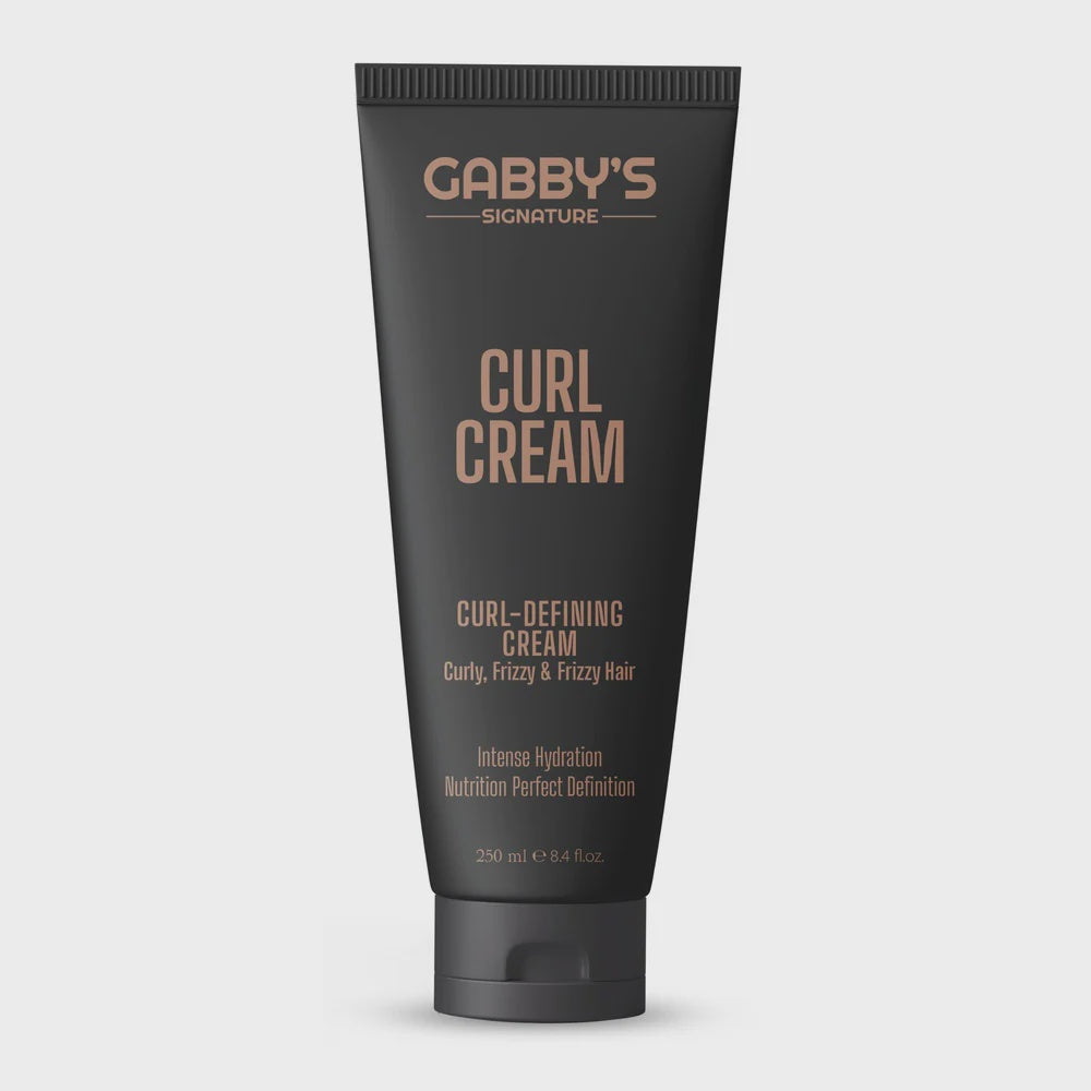 Discover your recipe for perfect curls with Gabby's Signature - Curl Defining Cream 250ml, a luxurious treatment designed to provide intense hydration, nutrition, and flawless definition. This expertly crafted cream is your daily ally in the fight against frizz, shaping and defining every single curl without any unwanted stiffness. Enriched with a beautiful blend of natural oils and butters, it deeply moisturises your hair, leaving it feeling incredibly soft and supple. The formula features nourishing Shea Butter to combat frizz, strengthening Coconut Oil to add shine, and Flaxseed Oil to provide a light, natural hold.