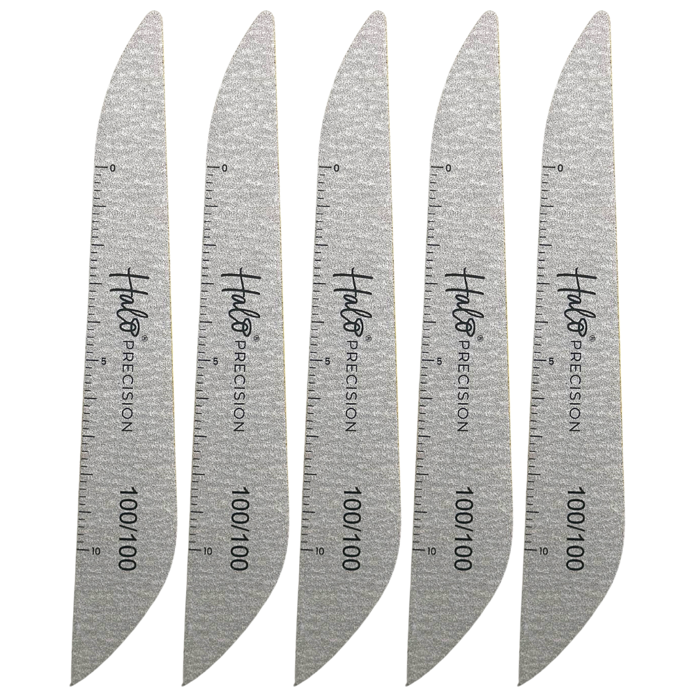 Upgrade your nail file with the new, unique shape of Halo Precision Zebra Files. Made using the same quality filing paper as the popular range of Halo Files and Buffers, the Precision File offers the professional nail tech a number of benefits: