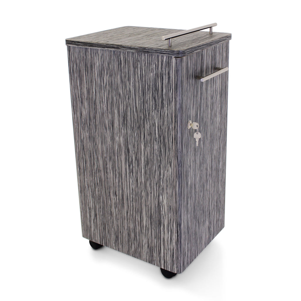 Prima is a high-quality Hair and Beauty Salon Trolley with a refined look. Prima will complement the most elegant of Salon work spaces. Includes a fixed shelf, four sliding trays and a lockable door. The brushed steel handle makes it easier to move the trolley around.