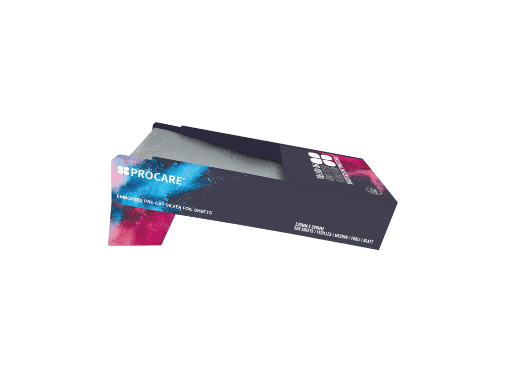 Procare’s EXTRA LONG PRE CUT EMBOSSED FOIL SHEETS offer a seamless experience for hair professionals. These sheets are generously sized at 130mm by 300mm, providing ample coverage for various hair lengths and styles. The embossed finish adds a touch of sophistication and serves a functional purpose – ensuring a firm grip and preventing unwanted slipping during application.