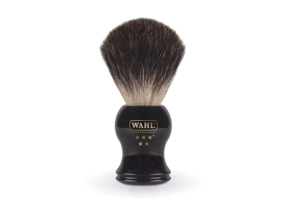 Shave in style with Wahl’s Badger Bristle Shaving Brush; a traditional, handmade brush fitted with ultra-soft badger bristles to lift facial hair for a close, comfortable shave.